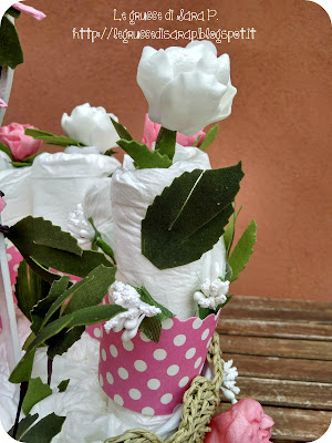 Ho realizzato un cestino di rose fatte con i pannolini.